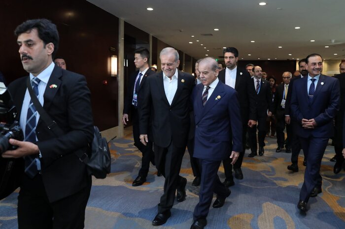 مسعود پزشکیان و شهباز شریف رئیس جمهور ایران و نخست وزیر پاکستان در چین دیدار کردند. در این نشست فرمانده ارتش پاکستان نیز حضور یافت.