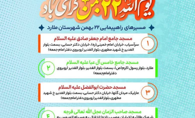 مسیرهای راهپیمایی یومالله ۲۲ بهمن ۱۴۰۴ در ملارد اعلام شد