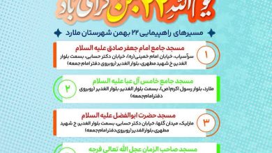 راهپیمایی باشکوه ۲۲ بهمن در ملارد از پنج کانون محوری مساجد جامع شهر آغاز میشود؛ رئیس پلیس راهور غرب استان…